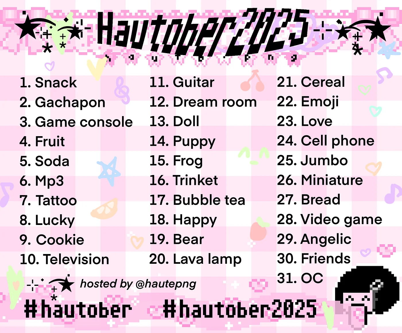 Hautober 2025 ⋆˙⟡ art challenge inspired by y2k, webcore, nostalgia, and food !